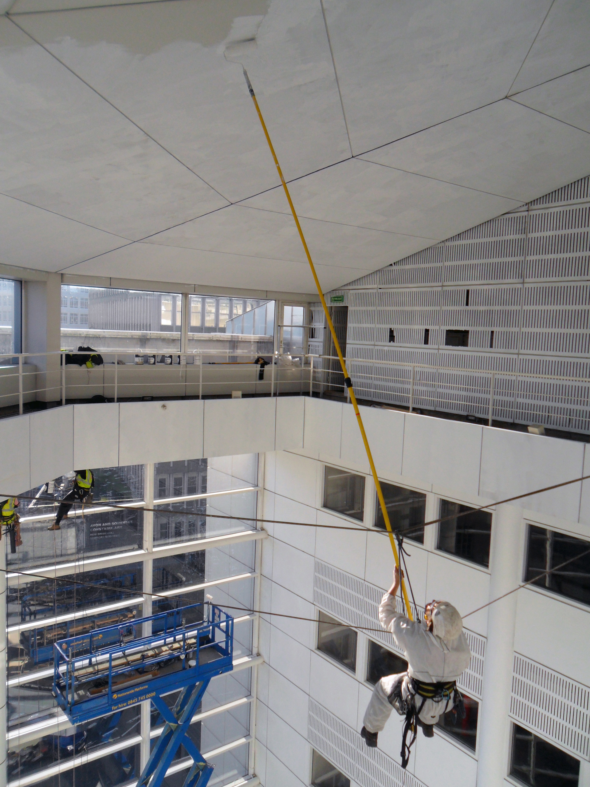 Due to access restrictions, MEWP could not reach the ceiling of the atrium